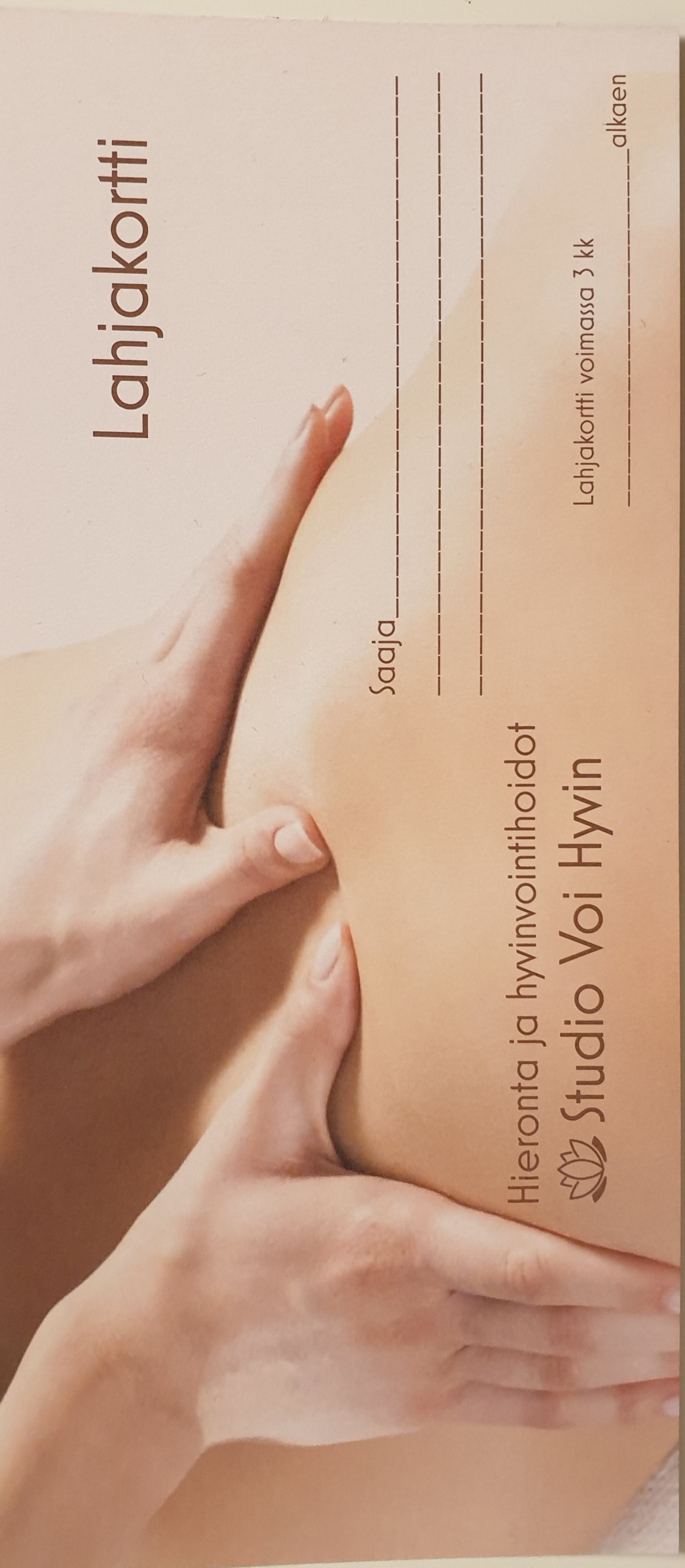 Lahjakortti on mieluisa lahja niin ystävälle, kuin yhteistyökumppanillekin. Lahjan saaja varaa hoidon normaalin ajanvarauskäytännön mukaisesti.